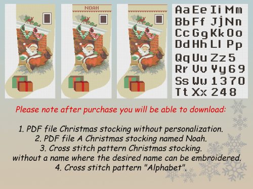 Personalized Christmas Stocking Cross Stitch Patterns PDF, Counted Vintage Retro Design for Beginner, Easy Cute Santa Claus DIY, To Download
