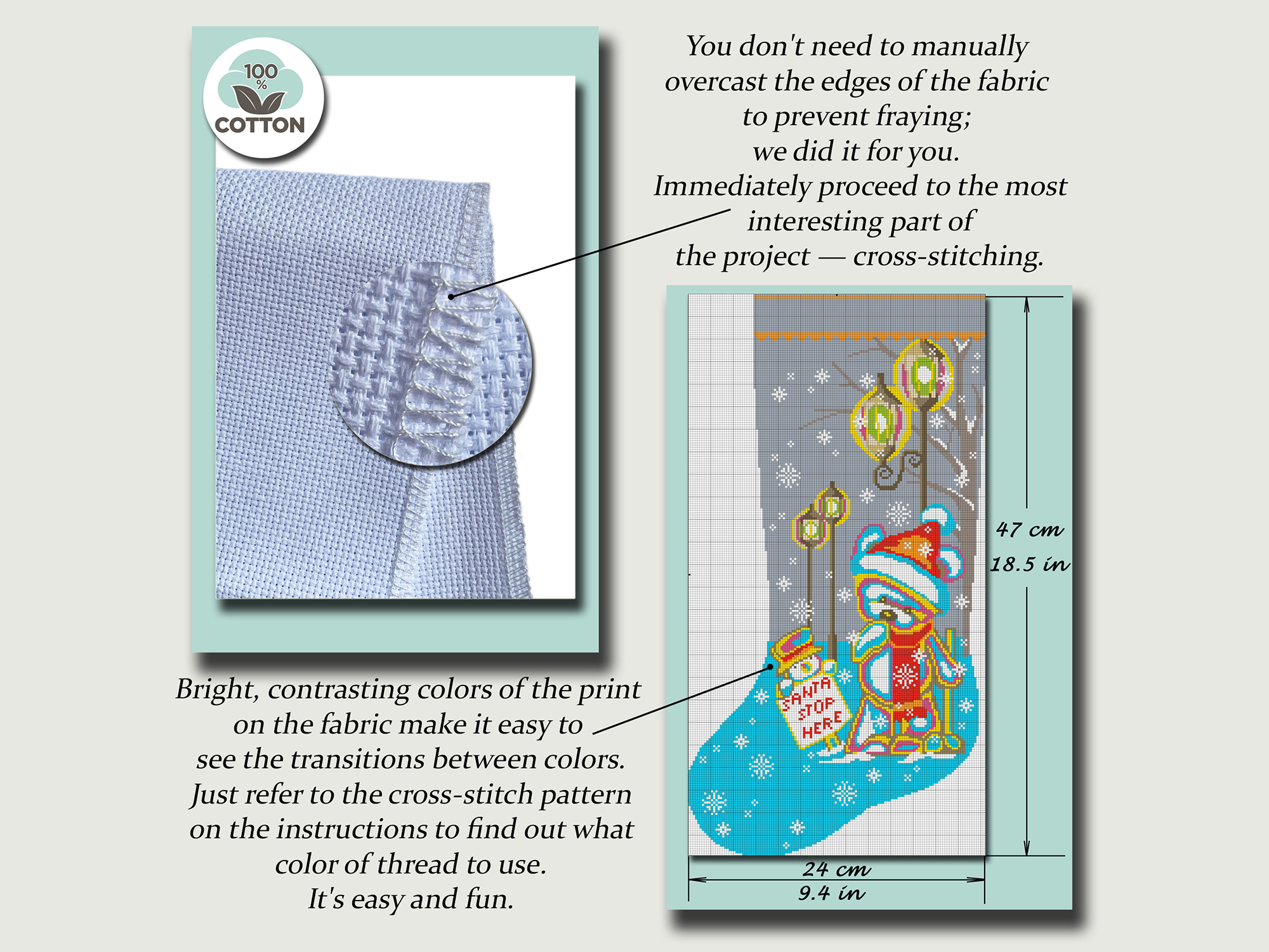 βœ… Stamped Christmas Stocking Cross Stitch Kits. Easy Design Perfect for Beginners.