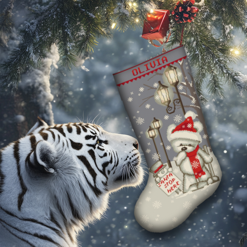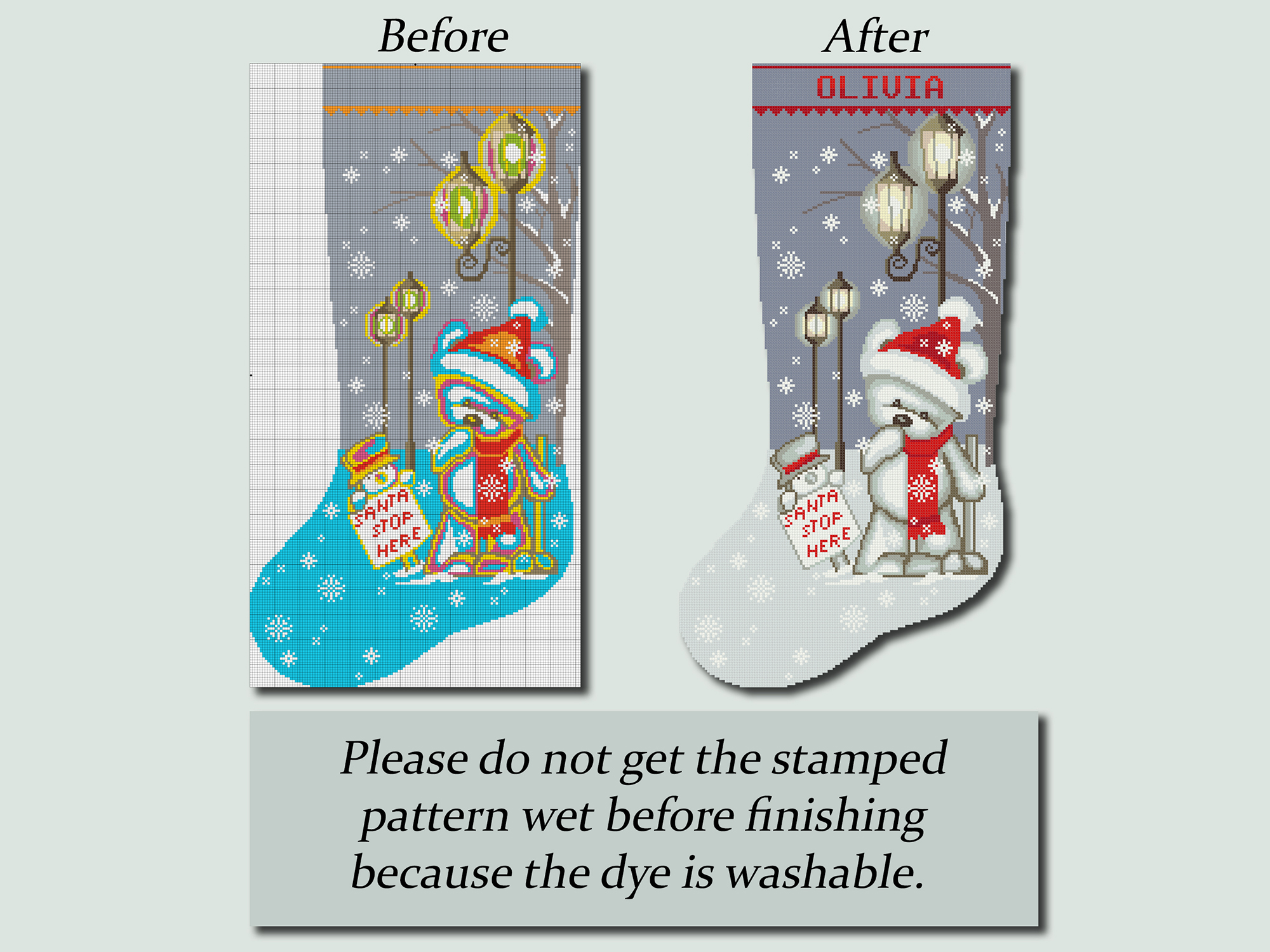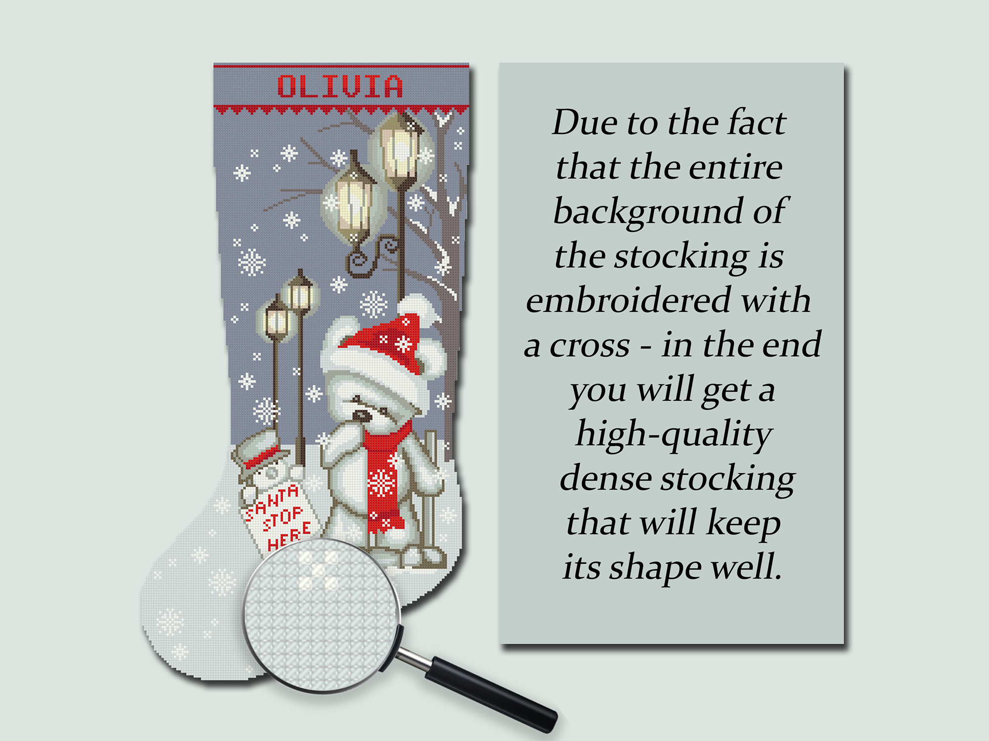 Christmas Stockings Cross Stitch Kit for Adults, Personalized Stamped Needlepoint Embroidery Set, Cute Xmas Bear, Easy Counted Patterns for Beginners, DIY Holiday Home DΓ©cor