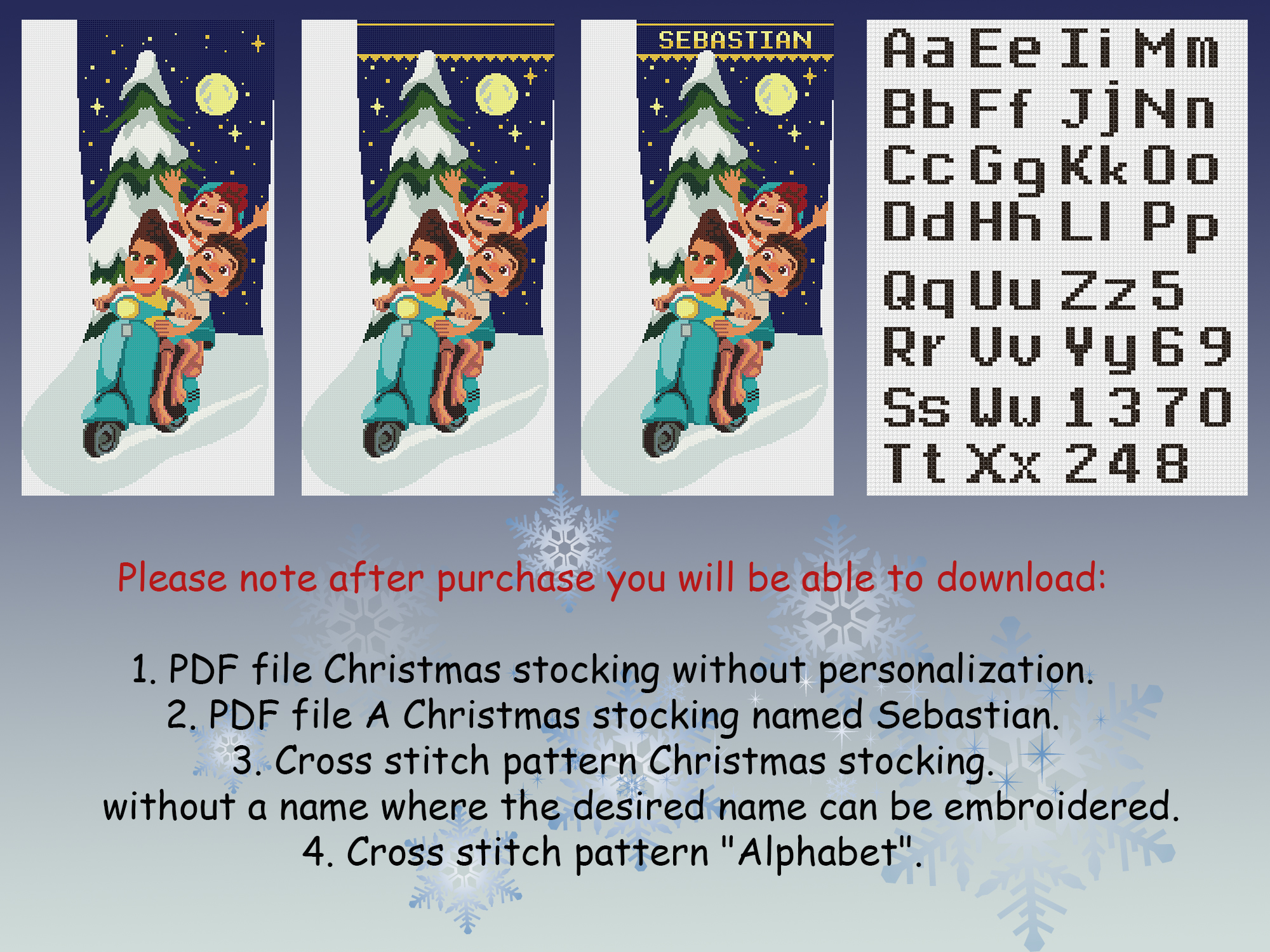 Personalized Christmas Stocking Cross Stitch Pattern PDF, Modern Counted Easy Simple Cute Luca Holiday Stockings Cross Stitch Chart For Beginner DIY, Digital Download