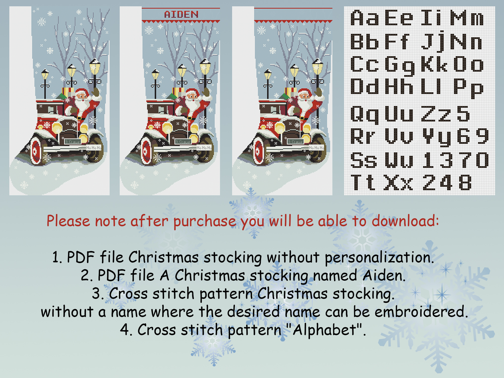 Cross Stitch Patterns PDF, Personalized Christmas Stocking, Modern Counted Easy Simple Cute Santa Claus, Red Truck Holiday Stockings Cross Stitch Chart For Beginner DIY, Digital Download
