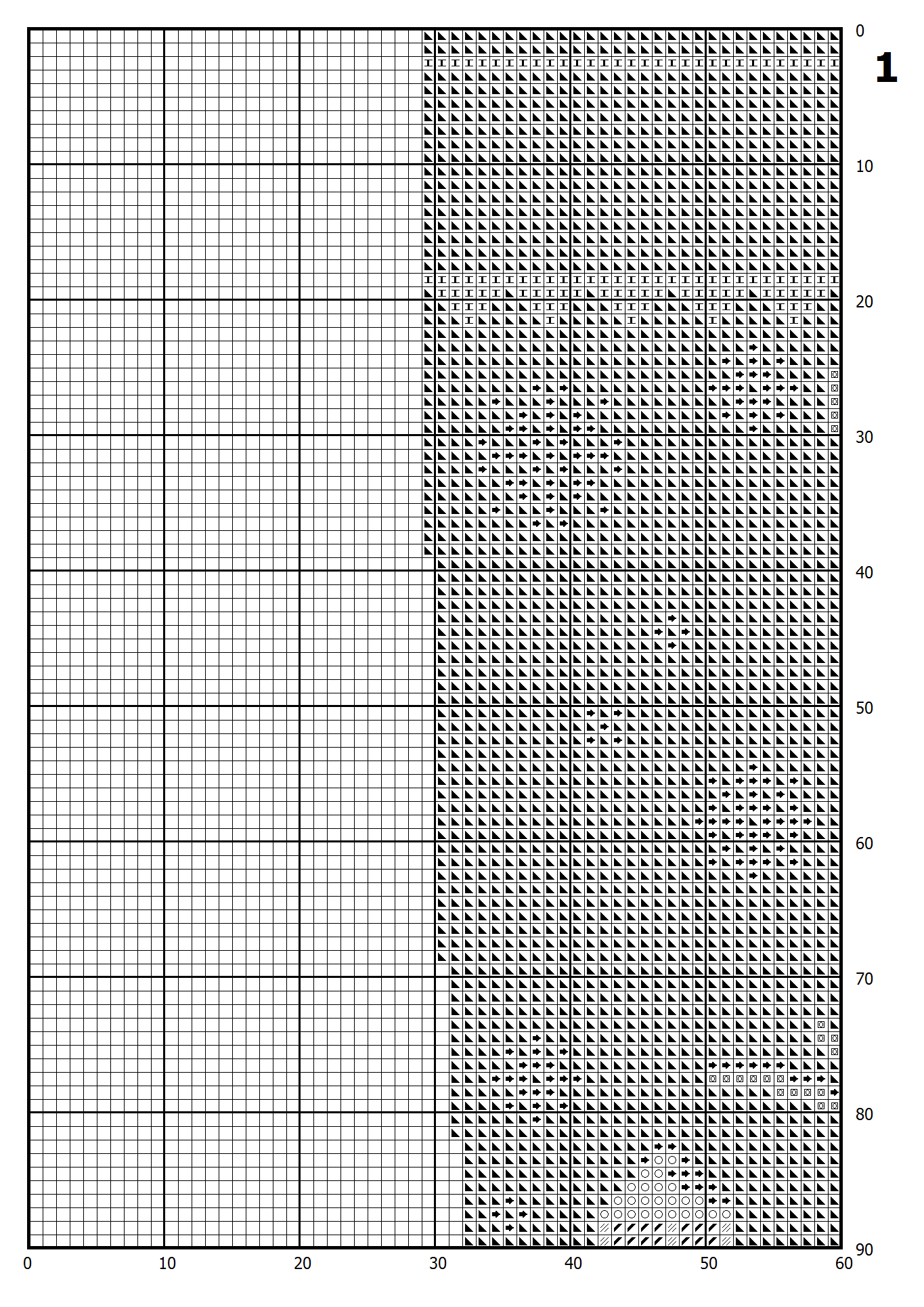– Color symbol pattern divided into pages for printing.