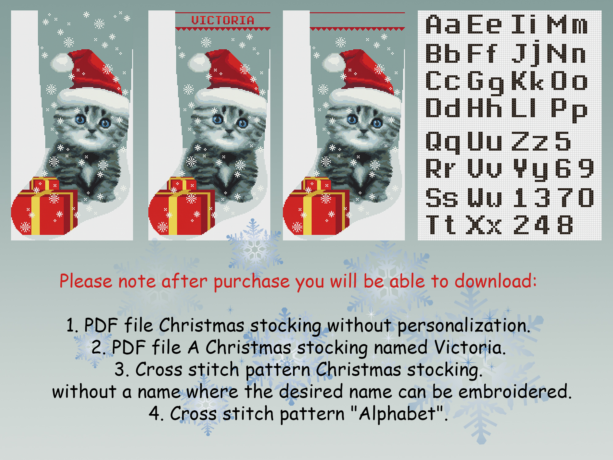 Cross Stitch Pattern Christmas Stocking PDF, Personalized With Name Modern Counted Easy Cute Simple Cat Baby Animal Holiday Stockings Cross Stitch Chart For Beginners DIY, Digital Download