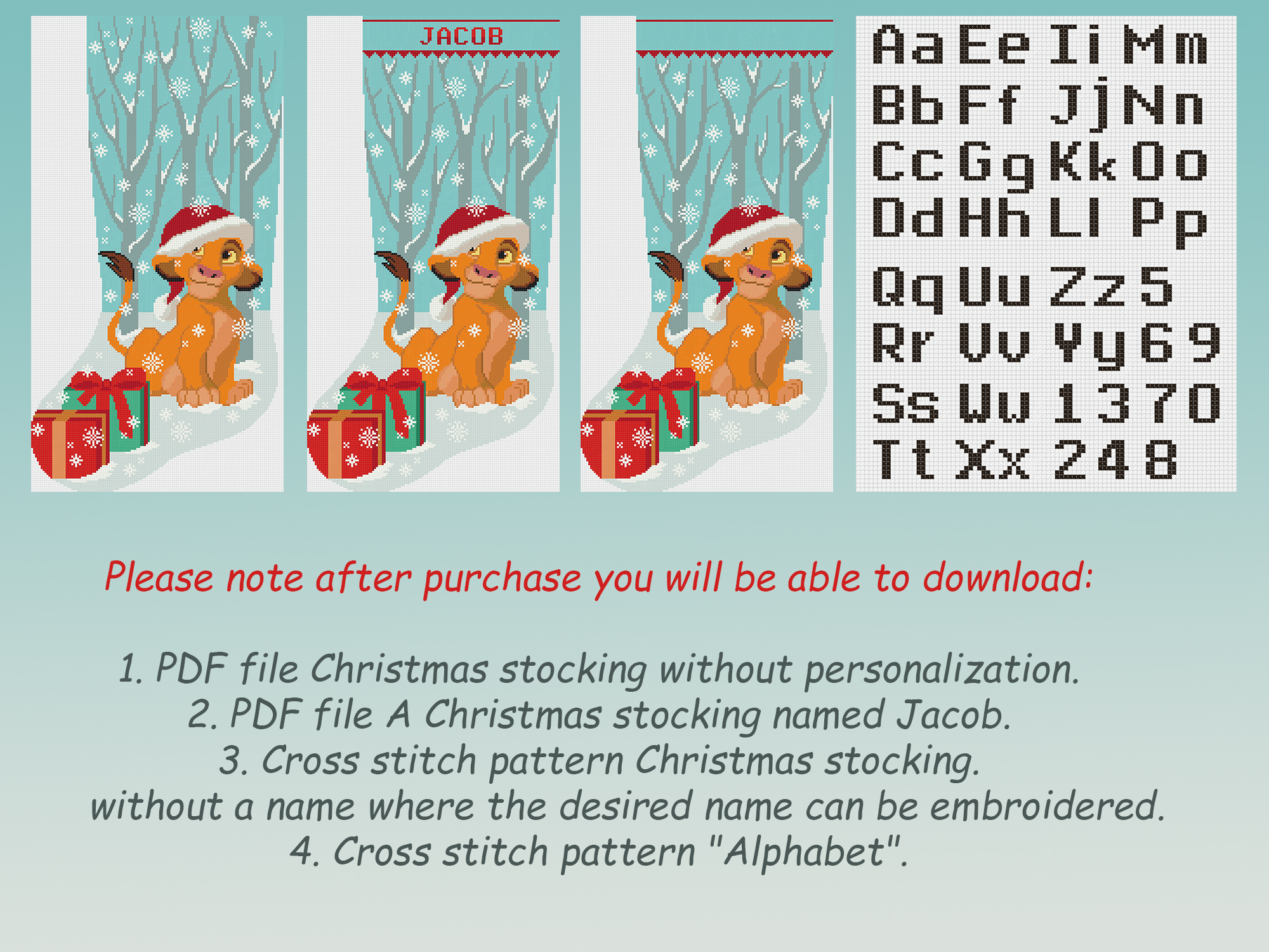 Cross Stitch Stocking Patterns PDF, Personalized Christmas Modern Counted Easy Simple Cute Lion Xmas Design, Holiday Stockings Cross Stitch Chart For Beginners DIY, Digital Download