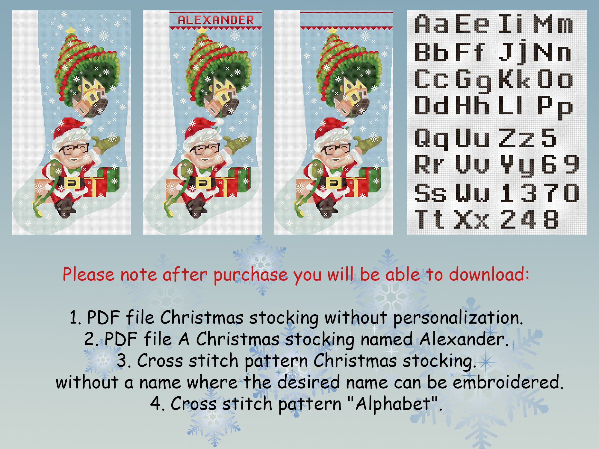 Cross Stitch Patterns Christmas Stocking PDF, Personalized Modern Counted Easy Cute Carl Holiday Stocking Cross Stitch Chart For Beginners , Digital Download