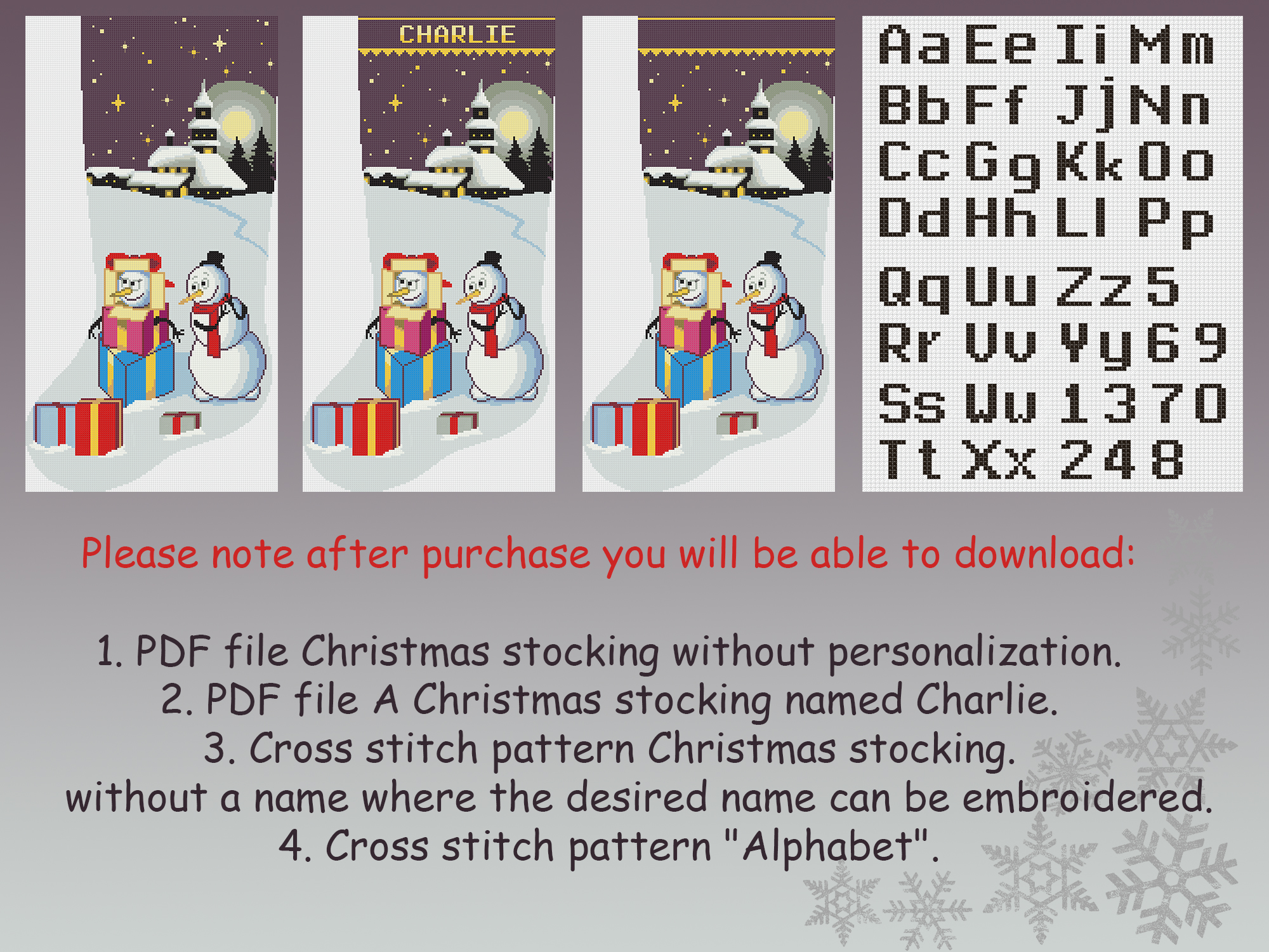 Cross Stitch Patterns Christmas Stocking PDF, Personalized Modern Counted Easy Simple Cute Funny Snowman Holiday Stockings Cross Stitch Chart For Beginners DIY, Digital Download