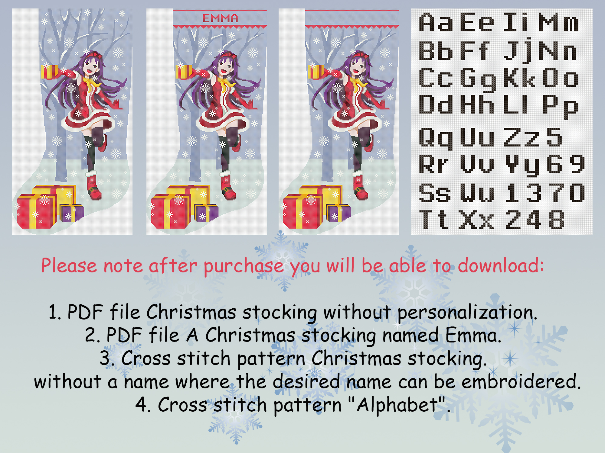 Be the first to review “Cross Stitch Patterns PDF, Personalized Christmas Stocking With Name Modern Counted Easy Cute Simple Anime Holiday Stockings Cross Stitch Chart For Beginners DIY, Digital Download”