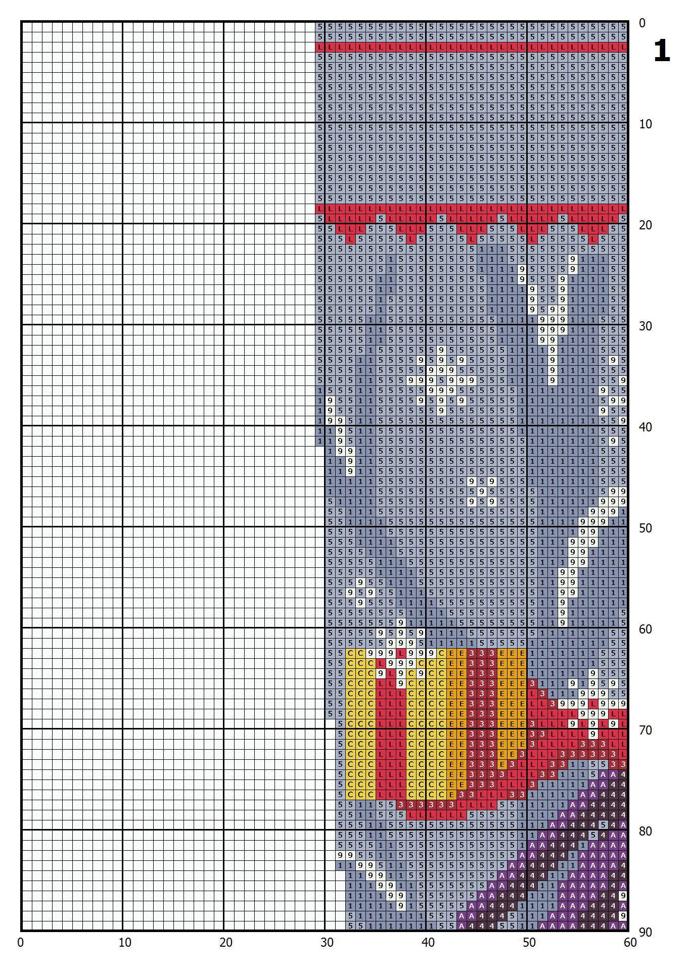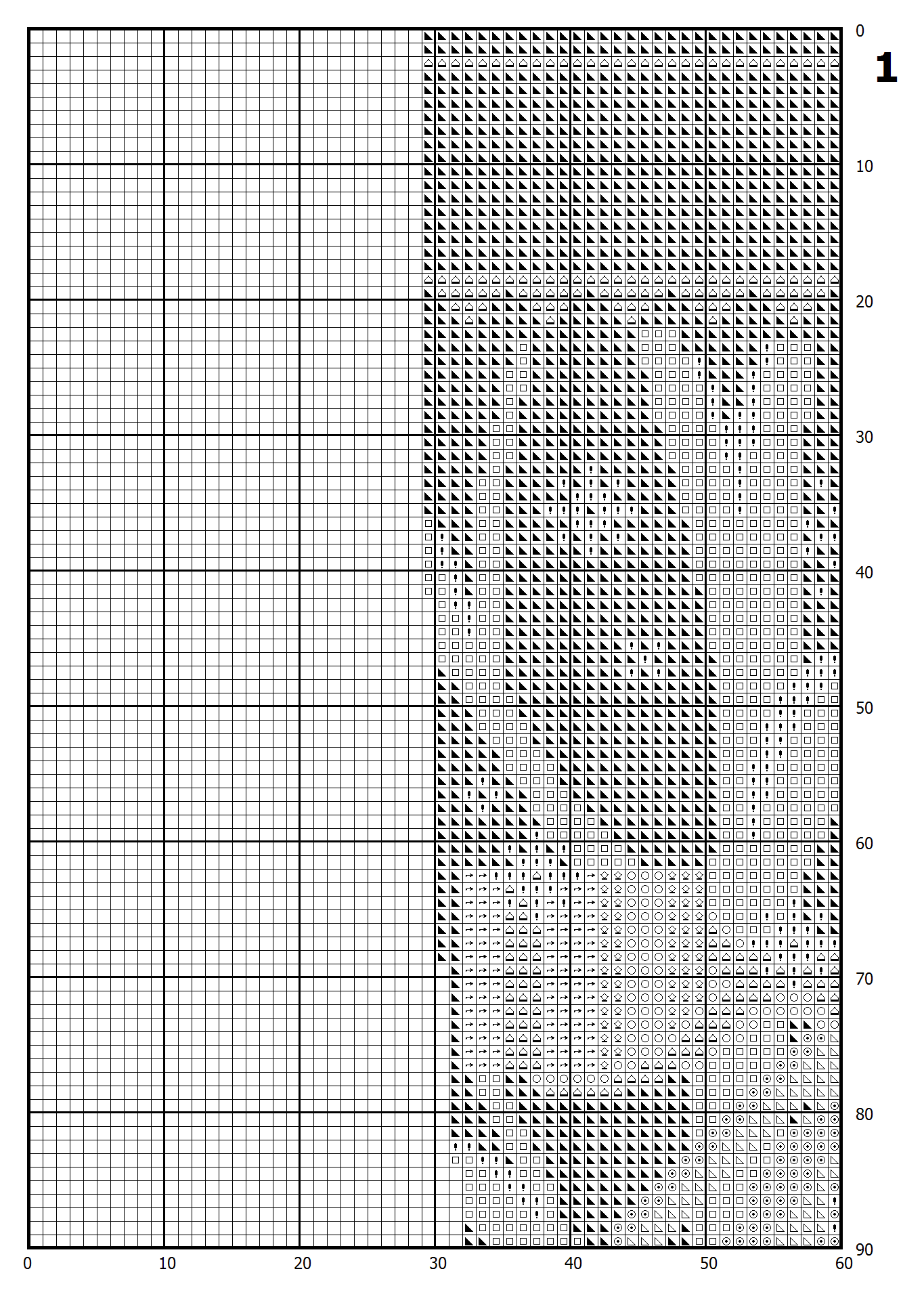 – Color symbol pattern divided into pages for printing.