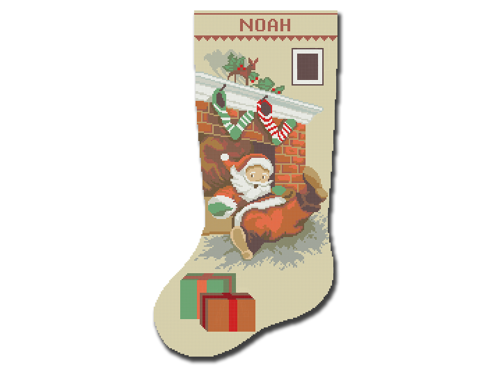 Personalized Christmas Stocking Cross Stitch Patterns PDF, Counted Vintage Retro Design for Beginner, Easy Cute Santa Claus DIY, To Download